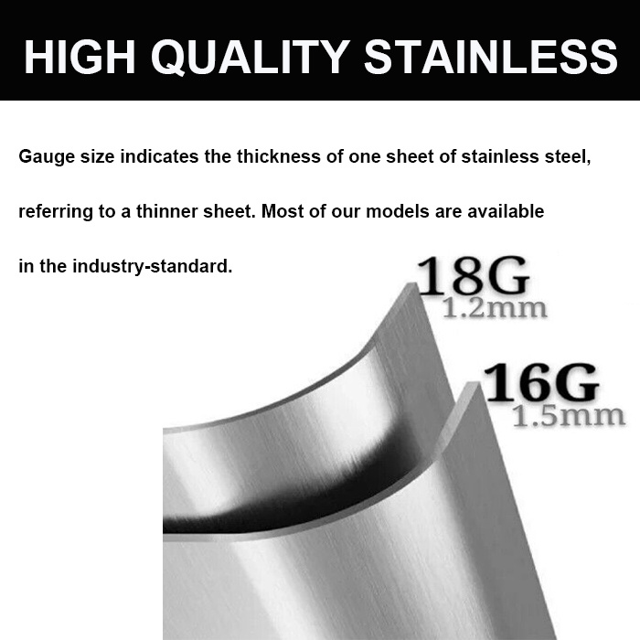 16-Gauge Stainless Steel: A thicker material (1.5 mm) that withstands heavy usage and resists dents and deformation.